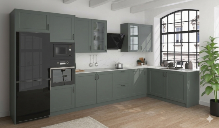 The colour Poplar Green with Silk Matt finish is a pastel shade of green. This tone combines perfectly with other shades of green and white. This Poplar Green is an ideal tone to create a modern yet traditional, elegant and natural look. A perfect choice if you want your kitchen to be current and contemporary.